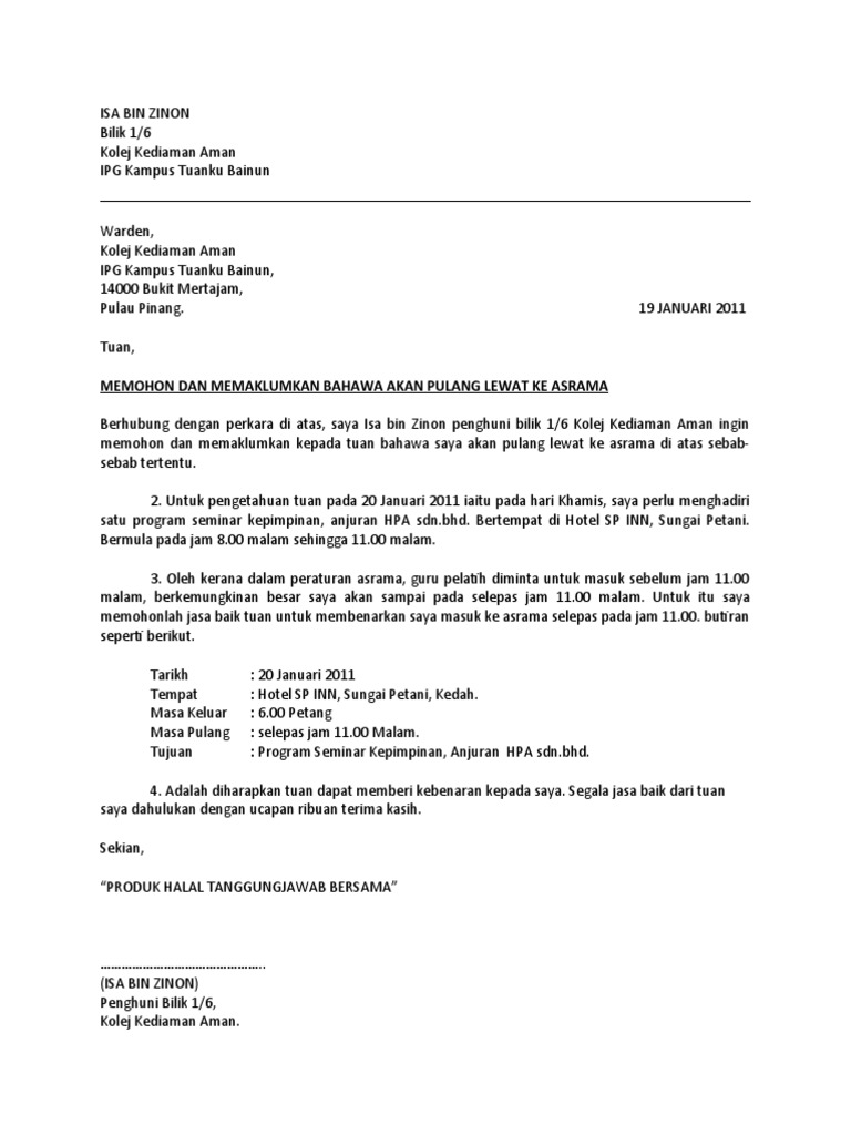 Surat Rasmi Rayuan Asrama Contoh Surat Permohonan Asrama Contoh Surat Permohonan Asrama Isi Atau Objektif Yang Ingin Disampaikan Harus Jelas Supaya Osahar Satryo
